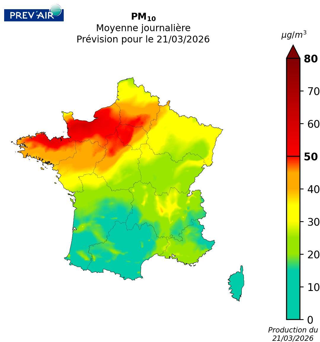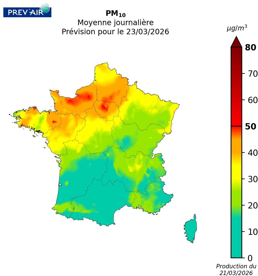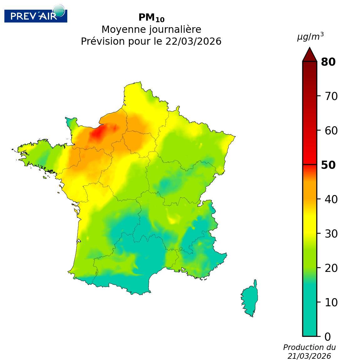 - A partir de demain, les concentrations de particules devraient baisser mais restaient soutenues sur une large moitié nord de la France. Des dépassements localisés du seuil ne sont pas à exclure.